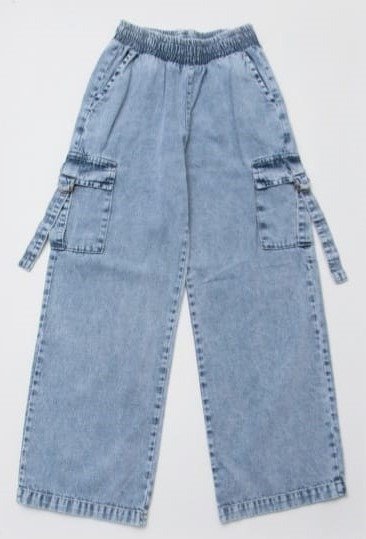 Jeans wide leg con cintura elastico y bolsillos con presillas