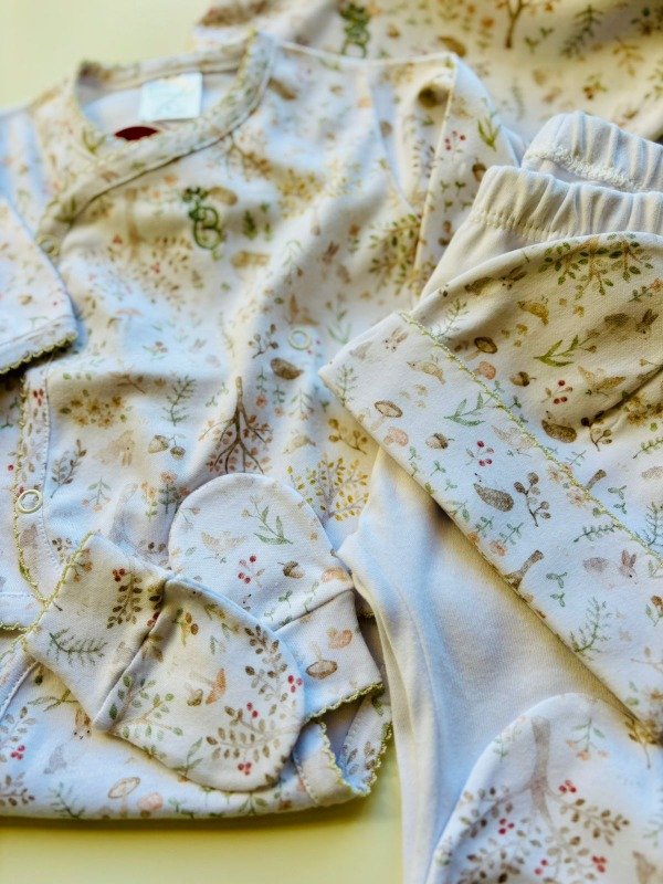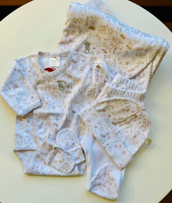 Este ajuar cuenta con lo básico para los primeros momentos. Para completarlo aún más les recomendamos sumarle una camperita en pima simple y, el enterito de apertura delantera