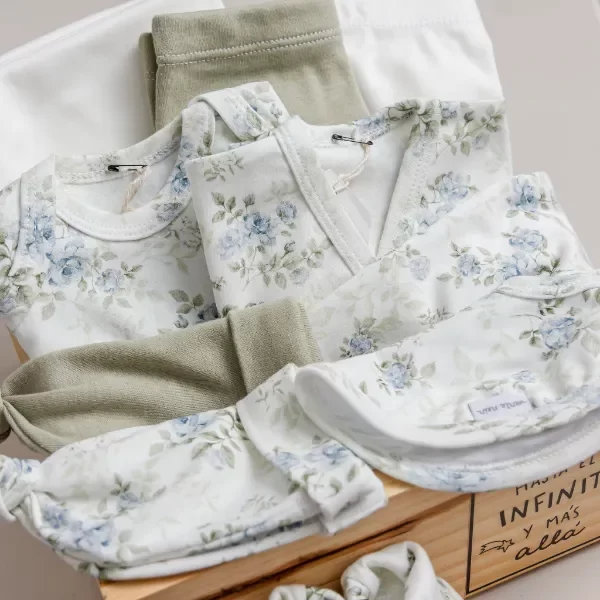 Este Pack de Bienvenida de 10 piezas es la elección ideal para recibir a tu bebé en camino con todo lo necesario para sus primeros días. Presentado en una súper cajita de madera, éste pack combina estilo y funcionalidad, asegurando que tu bebé esté cómodo y divino.