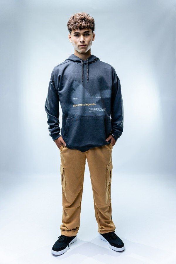 Buzo de rústico con con estampa en el frente. Buzo ideal para los dias de media estación, para usar con jeans , shorts o polleras