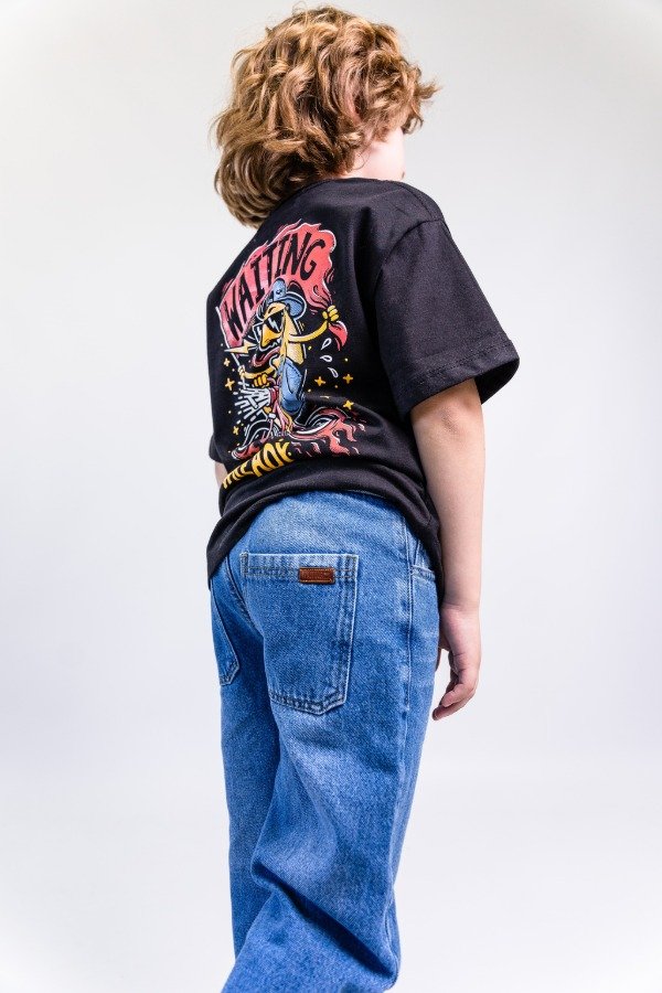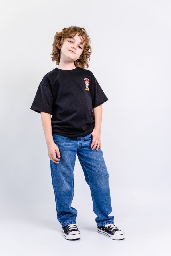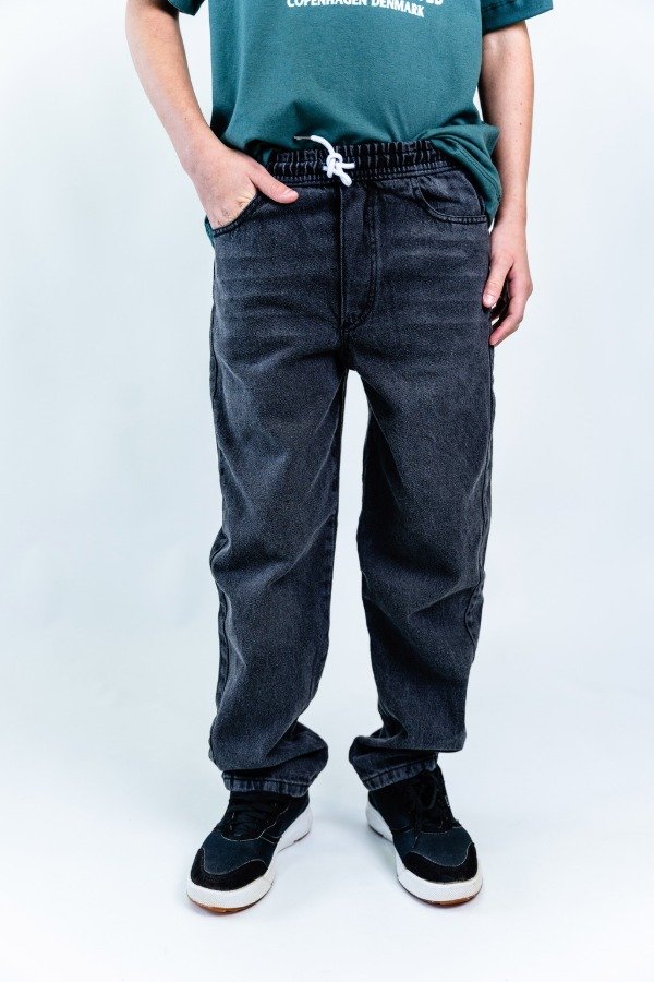 Jean cintura elástica confeccionado en denim. Diseño de corte loose, amplio y holgado a lo largo de toda la pierna, con un énfasis especial en la parte superior y los muslos. Cuenta con cintura elástica y cordones ajustables al frente, bolsillos delanteros y traseros, y un lavado con efecto desgastado.